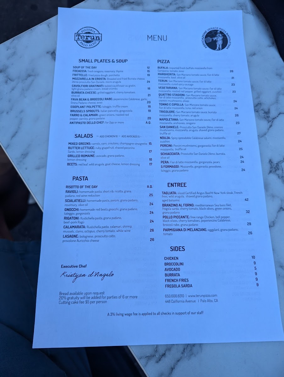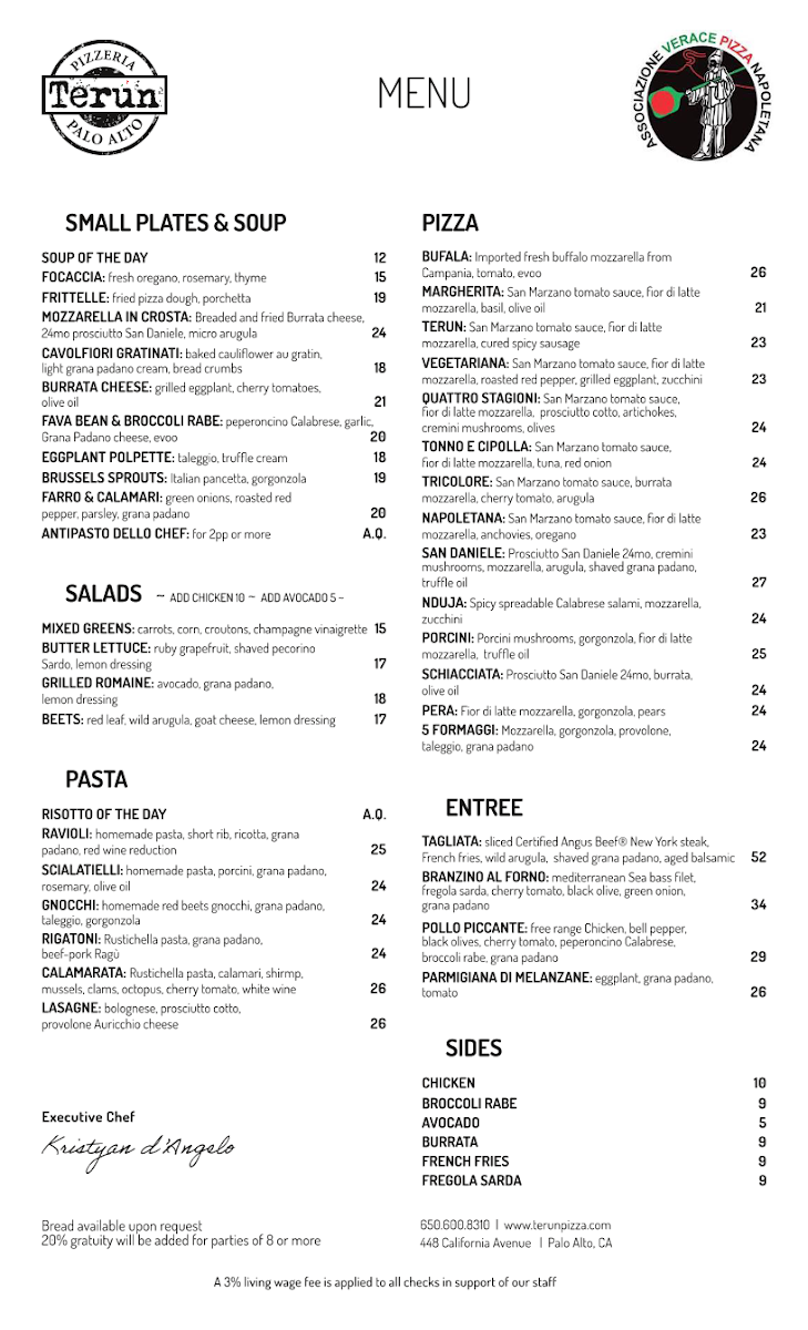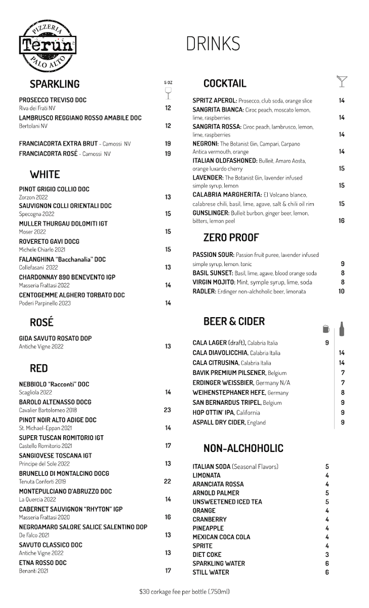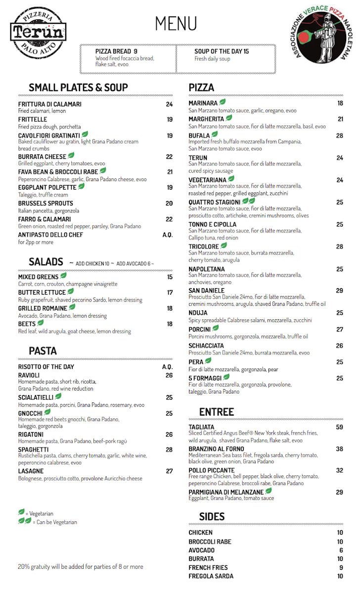 The menu at Terun Pizza is thoughtfully organized into several sections featuring authentic Italian cuisine with a focus on pizzas, small plates, and desserts. Diners can explore a variety of options designed for sharing or individual enjoyment, suitable for lunch, dinner, or casual gatherings.